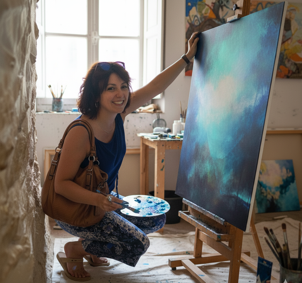 Como artista visual especializada en la abstracción lírica, mi trabajo se inspira en la espontaneidad y las fuerzas de la naturaleza: el cielo, la tierra, el fuego y el agua son fuentes inagotables de mi inspiración.